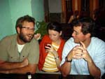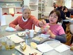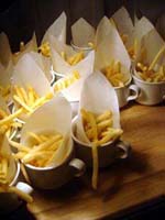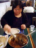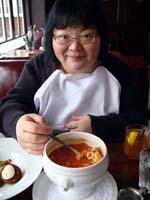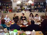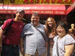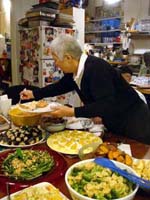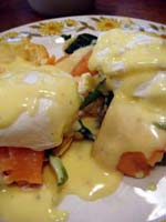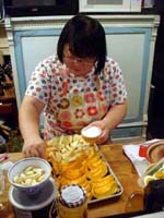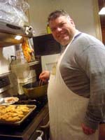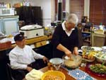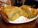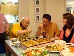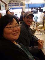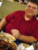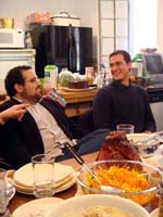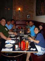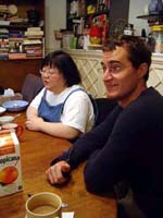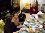 It started nicely enough. We took a vacation together for the first time in ... well, we don't remember how long. We chose to go to San Francisco. Why? It's a food town, and we have friends who moved there last summer. We enjoyed it thoroughly, and plan to visit other cities ... even if it means forcing days off! (And yes, it's our own fault that we don't take vacation days, for fear of the work that will meet us when we arrive back at work. Yet it's never killed us. That's a lesson to be learned!) In fact, our new travel philosophy is to go to places known for their food. Which means it is unlikely we will ever be going back to Indianapolis again (no matter what kind of Star Wars conventions they promise). Though we did find one outstanding Kansas City-style barbeque pushcart there once (but none of the natives were willing to try it out), and a lush chicken velvet soup at a defunct tea shop. Ask, we'll let you know where they are! Early in 2008, Maki became full-time; a few months later, she was Director of Marketing. Then later in the year, she was demoted back to Manager the company was bought by a larger, San Francisco-based software company, which added at least a layer or two of hierarchy up top. It's been a rollercoaster experience, having to learn new systems, new procedures, new rules, take certifications, etc. She did try to quit a few times but was told to go back to her room and finish her projects. The upshot has been an adventure and a few trips to San Francisco! Brian's assistant will be retiring this Easter. Brian also hurt his knee and spent the last quarter of this year affecting a signature waddle. Fortunately, it's healing on its own, with no surgery needed just in time to shovel the snow falling around us! Last year was quite dry and warm, so no snow to deal with. This year, he's run out of salt. And it has snowed enough for Brian to state that 75% of snowstorms happen on Saturdays. Wonder how that stat happened? Good news is that he can stop worrying about the church building's pitched roof most of it was replaced in two big projects in late winter last year. It's now free of leaks for the first time in living memory! Now he gets to move on to repairing the water damage from years' past and worry about things like why does the boiler keep cutting out?? He's also fallen off of an old ladder when changing lightbulbs. Time for replacement elevation devices! In the category of bad but ultimately good news: Maki's parents have both been seriously, and separately, ill this year, too. Happily, they are survivors and have incredible resilience. Chemo, radiation, neurologists, pulmonary specialists, surgeons ... as a family, we're learning way too much about the medical systems. We've run into many frustrations, and have also met very capable and wonderful people who have helped heal us. Diligence and patience are important, of course, but we feel fortunate, indeed! This was a milestone year for Brian, who turned his odometer at "14,610 days," and we celebrated by inviting some good friends for the weekend. We played Wii, PS3, watched a Broadway show, ate prodigiously (seriously, it was amazing): at home, take-out (including the most wondrous chicken tikka masala), and at many a fine establishment. And in honor of the Olympics in Beijing, we had dimsum at a great dimsum palace in Chinatown, and gave each other medals with titles like, "Biggest Bitch." No prizes for guessing who deserved the medal (versus who got it)! Brian received so many generous and heart-felt gifts in a really really wondrous food and laughter (if you haven't seen the comic summary of the weekend on our homepage, check it out). The final meal together was the group-making of a birthday version of eggs benedict: gougères topped by smoked salmon, sautéed spinach, poached eggs, and jalopeño lime hollandaise. Even though some of us freaked out at the new-found knowledge of what, and how much, is actually IN hollandaise ... Then other friends came and made Belgian style brownies and salted oatmeal chocolate chip cookies, washed down with our ghetto Dark 'n Stormies. It was a great birthday weekend! We've started to understand what the big deal is about birthdays, and are looking forward to the next celebration. May your celebrations be as awesome and full of mirth and friendship, as well as great food. Our BFF got married at the end of this year, too, in a huge fête in Boston on the week it was 1°F / -15°C, with windchill. Fortunately, he foresaw this and put us all into the hotel where the nuptuals and the reception took place. It meant we were coddled in our own world for a few days, with people we most wanted to be with, anyway. What an ideal way to celebrate the end of one year, and the start of a new life! It was a wondrous way to enjoy our chosen family. We had the opportunity to make the wedding cake, though it ended up featured at the rehearsal dinner, for convoluted reasons. The cake topper was later duly shipped to California, where it arrived broken. Fortunately, we'd packed krazy glue in the box. Brian also had the honor of officiating the wedding amazing amount of faith people have in us, eh? Another close friend took Brian up on the offer of expertise in construction and experience with roofing, and created an event we now refer to as "Roofestivus". Yes, he actually trusted us with tearing out and laying in a new roof on his house in DC! It's a way fun way to experience each other in different contexts, and reminded us why doing stuff that make us look foolish is a good even a great thing. Though admittedly, we are rather expensive labor for a very mediocre job at roofing! (Last we heard, however, it's still holding dry.) We've assembled and cooked the second and third turduckens of our lives, and it's become kind of second-nature now as long as we have a turkey, a duck, and a chicken on hand. Maki's workmates were invited to help with Thanksgiving leftovers, and they did such a good job,