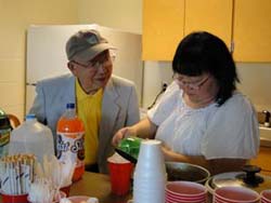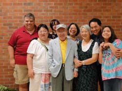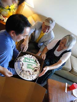 - Mom and Dad's 50th wedding anniversary in May! We celebrated in Oneonta, where the family congregates every year. Keisuke helps to run a Music Festival over the summer and Mari's elder daughter attends for a month. He ordered a huge ice cream cake with a flavor called "bittersweet symphony," and fortunately, our parents' 50 years turned out better than it did for the Verve ;). Mom and Dad enjoy seeing their first grandchild and the other young people perform their music in orchestras, bands, groups, choirs, ensembles ... it's a brilliant time, and curiously the only time during the year the whole family is together.