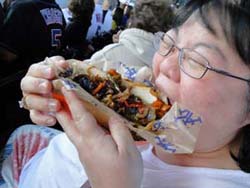 - Keisuke and Kristen's annual summer trek to NYC means a game at 2Shea (yeah, we're those people who still call it "Shea"). Does the hometeam win? Are you kidding? They just traded the current Cy Young winner! But they still serve Carvel ice cream with plasticky sprinkles in little Mets helmets, and that makes it worthwhile. And if you're going for the sausage sandwich, get it from the Kosher stand.