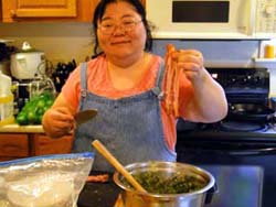 We housed friends who didn't have power or hot water, or needed to go to work but couldn't come from their suburban locations. We also found old friends from Maki's elementary school days! We shared dinner and many laughs; one of them even made the hat illustrated in the card; actually she made us many hats. :) It was a good storm, for us!