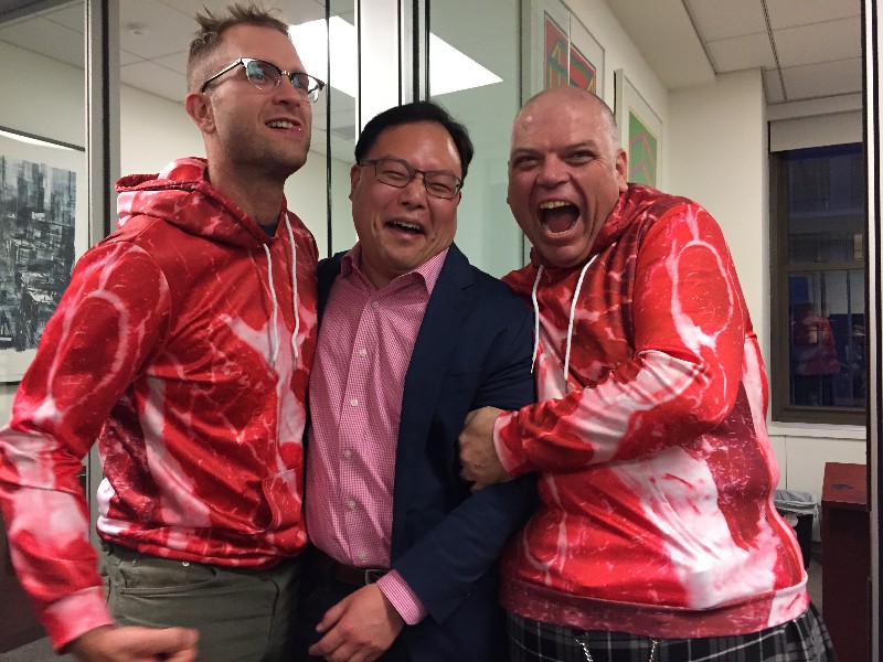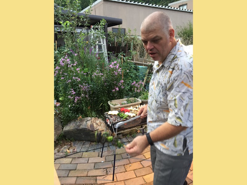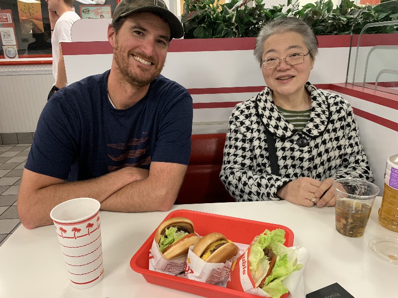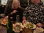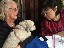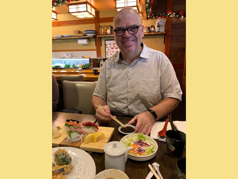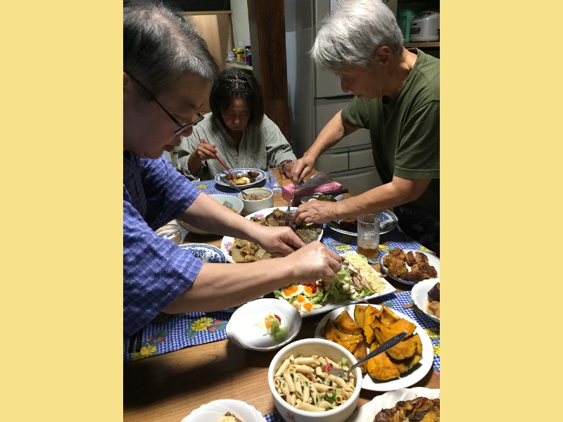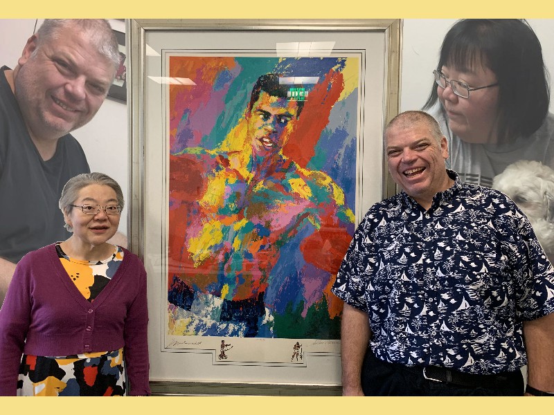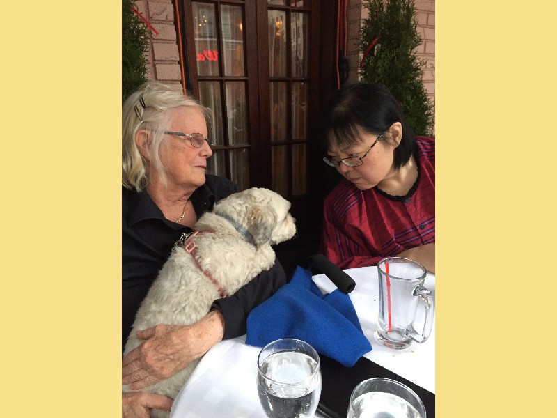 2018 First, elephant on the table! We have changed size we started a big weight loss effort over the past year and between us (with Mom's help), we have lost Muhammed Ali's mass! Maki's boss in Boston has the Leroy Neiman portrait print of Ali, so we took advantage of the opportunity to depict how much that is ... People ask "How did you do it?" and it's pretty simple low carb, but for life. We had some health scares, and it became necessary to finally address our gross tonnage. (On our holiday card doodle, note the funny line on my dress it's a graph of my weight over the past year!) A lot has gone on this year, apart from the usual opera subscription (weekly seats at the Metropolitan Opera House with friends), playing with a dog (just the one!) that isn't ours, visiting the farm in Japan, seeing friends who visit our locale, and visiting others. Bif had a milestone birthday and the SPS crew came to help celebrate. The original plan would have taken us to the far east; but since his age is merely a number, perhaps we shall do it in the coming year instead? We had a very fine dinner and we were so loud that the restaurant was likely relieved that we requested a table far to the back. We've suffered some surgeries this year. Nothing life-threatening but many things are life-altering. Like my carpal tunnel surgeries last year. This year is eyes, kidney stones, glands, cysts, bumps, blah blah blah. (Why so brief in description? Josh's mother says of such discussions, "I am tired of hearing the Organ Recital!" :D agreed!) Maki's favorite aunt (Maki is her favorite child) claimed she was "so sick! and maybe dying!" So we went to Japan ... and found her spritely and bossy. :) Never mind, it's a good reason to go. Plus Maki's cousin Mitihide has started the meets that could qualify him for the Tokyo Olympics, so we attended one while we were there. It also turns out that aunt really only wanted Maki and Brian to bake her pastries and bread! So we bought a small electric oven, since Japanese homes are not normally supplied with such an appliance. Now Mom can cook in Japan more like she does in NYC, too. Win! While in Japan, Mom and Aunt helped us with some of our arts and crafts sewing projects, including creating a placemat and cutlery set as thank you gifts for some friends. Mom and Brian polished lacquer chopsticks to go into the kits; no, we aren't selling them, but keep asking ... we might convince the relatives to be a sweatshop! And because we are losing weight this year, we have a need for re-sized clothing. Not only have we started sewing again (and acquiring machines like sergers -- who knew!) but friends and family have made us and given us some really beautiful things. Being smaller in size has many benefits ... and now we have to come up with ways to utilize the old (bigger) clothes (there are only so many aprons one needs ...) Sometimes the combination of things we have to wear makes for an "interesting" mash-up it makes me wonder if my "style" is 75% bag lady and 25% dress-up doll! It's been really great seeing old friends and making new ones we are traveling more and though our place is very messy, we do enjoy hosting too. Everyone's been very tolerant and understanding of the obnoxiousness of our eating habits. (When asked how I could give up carbs ... I reply that I consider them to be exciting, fun, delicious, sexy ex-boyfriends who will hurt me if I go back to them ... see? It's possible to get one's head into this mode if you can "find your metaphor" :) .) It's been really a fine adventure and we thank everyone for helping us :) Even if it means we carry our own lunch-pails and tiffin boxes and embarrass you by asking for our leftovers to be packed up in eateries. :) Aunt discovered that my not eating carbs means she gets them because i bring them home to her; so she approved of our changes, in the end! Enjoy the slideshow of the random and incomplete collection of photos from this past year we may add more from time to time, so it's likely worth returning ;) And/or come visit and see our lives for yourselves, if you dare! If you are interested in seeing more, we post daily (mostly meals and operas and visits) on Facebook; note that our posts are chronologically delayed since Maki feels a need to comment on every posted photo. She is also intolerant of people who don't like what we eat; she's become more aggressive about blocking and tackling these days ... but then again, her posts are public, so she's cancelled out her meanness :D . Happy Holidays, and may the New Year be fun and adventurous, no matter what trials and tribulations come your way and ours.