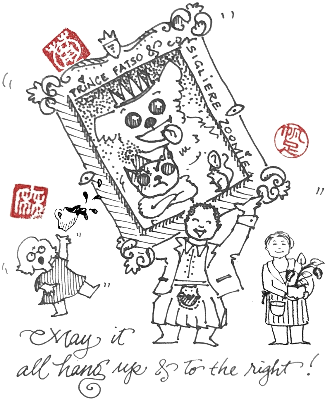We've learned that hanging pictures on a wall is an actual skill that Brian is often called upon to help. What's on our walls? You've seen them, surely ... Mom is responsible for the plants, though! As for spills and other messes, that's Maki's superpower :). As for Fatsp and Zoomie, they are the real bosses of the planet! :D