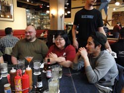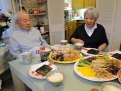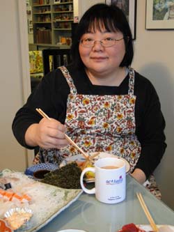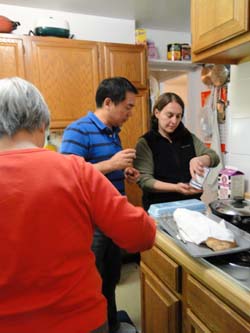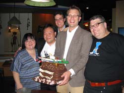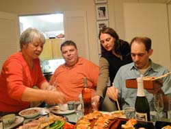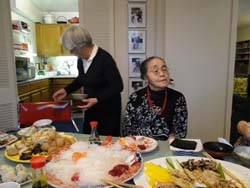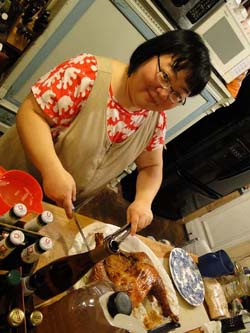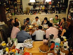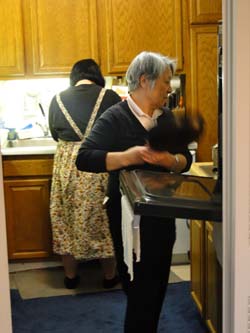 Not to say that it was all work and deprivation. In October, Maki's mother and Brian convinced Maki to return to Japan with them and Dad. The four of us traveled to Tokyo, Kyoto, Osaka, Kobe, and Fukui (from where Mom's family originates). In Tokyo, we saw Emi Hatano's "retirement" performance. Emi has known Maki since before Maki was born, and the septuagenarian on stage and dancing with men and women she'd taught and trained was a thrill. The choreography was outstanding, and we wonder if she's really capable of retiring. The rest of the trip was an eye-opener Maki was able to see how Japan has changed, and Brian saw it for the first time and fell head over heels in love with everything about it. His size and looks brought curious onlookers everywhere, and some got bold enough to talk to me (thinking he wouldn't understand them) and even to touch him (circus freak!). Imagine their surprise when he responded to their comments in their tongue was well worth any embarrassment. Also while there, Brian renovated part of the big kitchen in Maki's grandparents' century-old traditional house (the same era and setting as Totoro's house). Mom wanted it brought up to more modern standards and for it to be more convenient to use. So, furniture was moved and reconstructed (including a turn-of-the-century cabinet Maki's grandfather made for his then-new bride), plans for appliances and solar power investigated, flooring and extra-wide plinths put in. We got along very well with my mother's elder sister and her family, and Brian is looking forward to helping with the old-fashioned roof next year. We also had a life-changing trip to New Orleans this year, just before Mardi Gras. Tip: the prices of amenities and hotels rise astronomically closer to Mardi Gras, so go any other time. Or any other time there isn't a college football or basketball game. Or ... anyway, we paid $59 a night in the heart of the French Quarter for a room normally billed at $379 during silly week. We also managed to get to the Chesapeake in Virginia this summer, where Maki rekindled her love the sea (marine science major, remember?) and Brian got to imbibe in activities he hadn't enjoyed since he'd left New Zealand. We stayed with friends who took us fishing (Brian discovered why those little spotted fish are called "croakers"), and we helped with DIY house stuff. Amazingly relaxing if it's not your own house! The big change this year is Brian's job. His workplace had severe financial setbacks (being an endowment/foundation, they, like the rest of their sector, lost approximately 60% of their funds), and they decided to cut back on an already small staff. The timing for this worked out, in that Brian was having thoughts about moving on he'd taken the church job because he'd felt a calling, but it was clear by the end of 2009 that it was not a ministerial calling. Instead, he finds his calling is more specifically in helping th elderly. So, he'll be back in school working on a nursing diploma, wish him luck! That did mean we had to move apartments. Having received an estimate from a moving company, we instead decided to enlist many friends and workmates to help us pack up and move boxes from midtown Manhattan to mid-Queens, and to use that money to take people out to dinners and brunches instead. We consider it money well and wisely spent, and thank everyone who did everything from labeling and cleaning to the really heavy lifting, and to those who let us store our things in their unused property for our temporary storage needs (3.5 tons of books!!). And to those of us who bought food for our efforts, and did the often non-thanked staying with the trucks as the rest of us hefted and shifted through the snows of February, or made room in their home for our excess and duplicate furniture, encore mille grazie!! It means being closer to Maki's parents, which works out very well, to our mutual benefit. We're still adjusting back to the Forest Hills lifestyle, but it's been easier than expected we are car-sharing with Maki's brother and Mom. The commute is good too door-to-door from home to work is 40 minutes on the nose. We also have use of the "office" apartment space (a floor below us), so let us know if you'd like to visit! Dinner party duties are shared with Maki's mother more easily now. Maki's birthday was a big sashimi party; our housewarming was roll-your-own sushi. The more Japanese menus have to do with proximity to Mom and Dad! Our obsessive hobby of the year has been the opera. The Metropolitan Opera in Lincoln Center is a world-class venue with very affordable cheap-seats, and the new executive director is taking new initiatives to expand the opera-going audience beyond the glitterati. This means attracting top talent, and newsworthy sets and direction. It's been fun and exciting, and we often have extra tickets to take people with us. Let us know if you're interested in joining us! Our favorites last season were Richard Byrd's Carmen, and Barlett Sher's Les Contes d'Hoffman, and we discovered that a friend of Brian's was singing lead and understudy bel canto roles. A Mozart fan, Brian was surprised at how much he likes French opera. Maki enjoyed Janacek's From the House of the Dead (even if she had to bolt to the bathroom in the middle of her favorite lyric baritone's aria), and continues to follow singers, as well as new productions. Our opera buddies think she's a dork. Our non-opera buddies think other things. ;) No new roasts of note last year we made a turducken to help empty our freezers before we moved. That continues to be a proven favorite, along with the Café Zuni-inspired roasted chicken. Maki has been making a lot of cakes for birthdays and for office events, such as when new employees have joined her business unit. The most popular have been a sour cream-enriched red velvet cupcake, and a ricotta pound cake (which benefits from a long, slow cooking, almost like barbeque). We figured out the Little Pie Compa